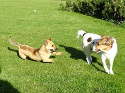 Jest niezwykle łagodnym psem, zarówno w stosunku do dorosłych, jak i dzieci, Będzie wspaniałym towarzyszem spacerów i przygód. Na spacerach bardzo pilnuje się człowieka.