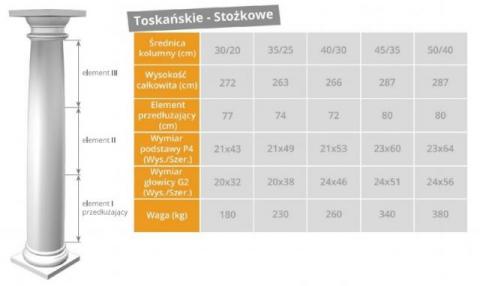 Podana cena dotyczy kolumny toskańsko-stożkowej fi 30/20