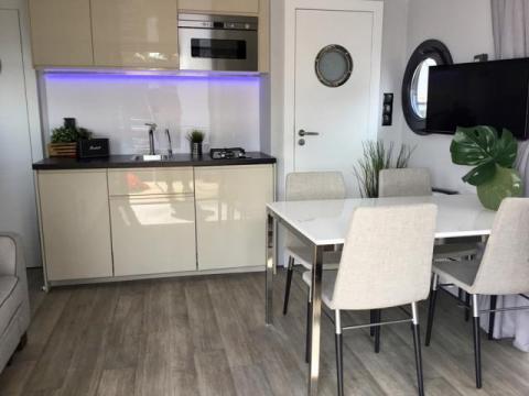 • Aneks kuchenny: długość 160 cm (góra i dół), oświetlenie, kuchenka gazowa 2 palnikowa, lodówka do zabudowy 230V