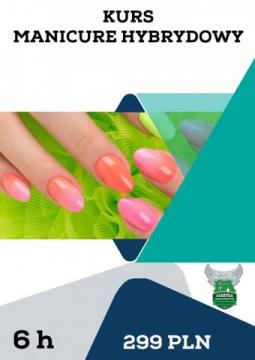 Manicure hybrydowy to metoda stylizacji paznokci, w której wykorzystuje się specjalny preparat utwardzany pod lampą UV. Popularnie zwana „hybryda” łączy w sobie zalety tradycyjnego lakieru, manicure żelowego lub akrylowego. Efekty zabiegu utrzymują się ok. 2 tygodnie. Zabieg polega na nałożeniu bazy, lakieru kolorowego i preparatu nawierzchniowego, a każda warstwa jest utrwalana pod lampą UV. Program szkolenia został opracowany w taki sposób, by zapewnić uczestnikom nabycie wiedzy