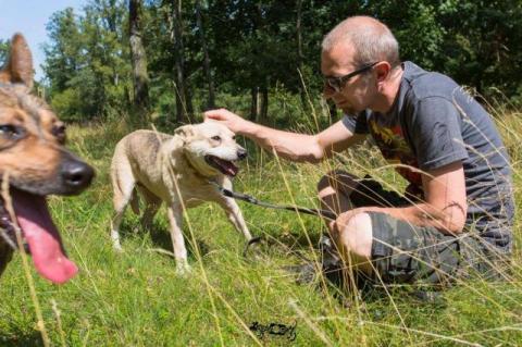 Biała w tym momencie jest jeszcze lękliwa, ale nie wykazuje żadnej agresji. Pomalutku przekonuje się do człowieka. Zaczęła wychodzić z wolontariuszami na spacer. Dobrze dogaduje się z psami. Biała ma około 6 lat.
