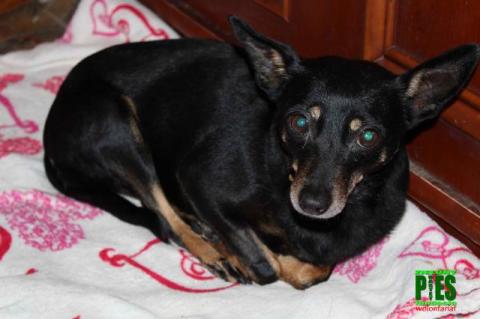 Czika ur. 2011 r. w typie pinczera,po operacji biodra,uszkodzonego podczas wypadku.Jest już w pełni sprawna,biega ,skacze, uwielbia siadać na kolanach. Mieszka z innymi psami ale lubi być w centrum uwagi. Przebywa w ośrodku fundacji pod Mszczonowem.Obowiązuje podpisanie umowy adopcyjnej.