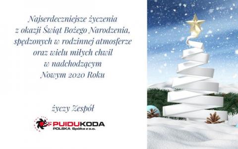 Najserdeczniejsze życzenia z okazji Świąt Bożego Narodzenia spędzonych w rodzinnej atmosferze oraz wielu miłych chwil w nadchodzącym Nowym 2020 Roku życzy zespół Puidukoda Polska sp. z o.o.