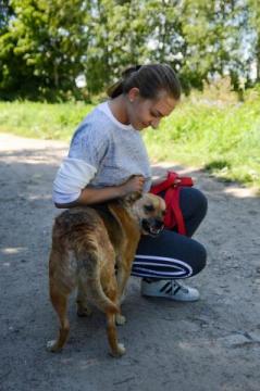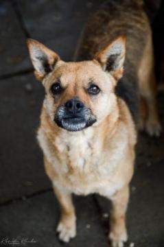 Goja to średniej wielkości i raczej drobnej postury, około 4 letnia suczka. Trafiła do nas wraz z trójką innych psów. Względem człowieka Goja jest bardzo przyjacielska, ciągle domaga się pieszczot. Zachęca do zabawy, zwraca na siebie uwagę. Jest bardzo spragniona ciepła i miłości. Jej kontakty z psami są dobre, toleruje zarówno suki, jak i psy. Potrafi bardzo ładnie chodzić na smyczy. Lubi kąpiele w rzeczce. Została wysterylizowana. Wprowadzi w czyjeś życie wiele radości!
