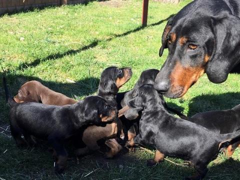 ur. 18.02.2020 r. (suczki i pieski, czarne podpalane) po rodzicach aktywnie polujących indywidualnie i zbiorowo (FUNIA Din Dina - POKER Piwniczański Jazgot). DO ODBIORU od 17.04.2020 r. bezpośrednio w hodowli w m. Przysucha k. Radomia. Cena do negocjacji.