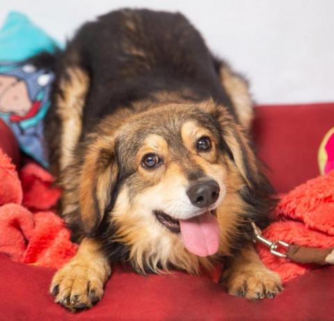 Wally jest średniej wielkości pieskiem, sięga do kolana.
