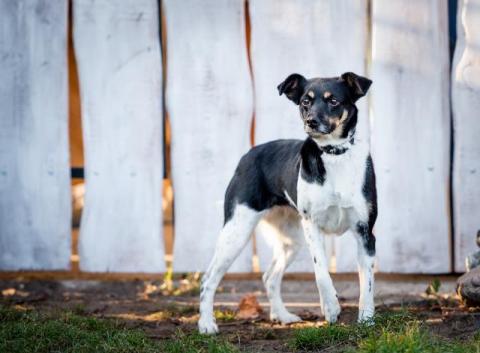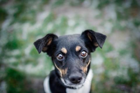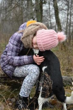 Birka, nieduża, wpatrzona w człowieka sunia szuka