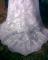Sprzedam suknię ślubną jednoczęściowa,w kształcie klasycznej litery A, na kole, w kolorze białym. Rozmiar 38. Kupiona 07.05.2010, założona tylko na czas ceremonii. Stan idealny. Suknia posiada atłasowy tren podwiązywany na troczki, wykończony szeroką koronką, jest odcinana pod biustem, gorset usztywniony fiszbinami, szelka na szyję, pokrycie z koronki wyszywane w drobny, lekko błyszczący, kwiatowy wzór.