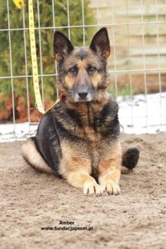 Amber to suczka rasy owczarek niemiecki w wieku ok 10 lat. Suczka jest w bardzo dobrej kondycji, bardzo lubi spacery, jest w miarę energiczna. Suczka potrafi zachować się w domu, zachowuje czystość, umie chodzić na smyczy. Jest przyjaznym i bardzo kontaktowym psem. Dogaduje się z samcem ze schroniskowego boksu. Prosimy nie pozwólmy odejść jej w schronisku.