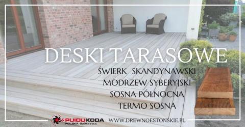 Puidukoda Polska posiada w sprzedaży deski tarasowe ze świerku skandynawskiego, modrzewia syberyjskiego, sosny północnej i termo sosny. Zapraszamy do naszego składu w Dominowie 163. Więcej informacji na www.drewnoestonskie.pl, tel. 723 850 333