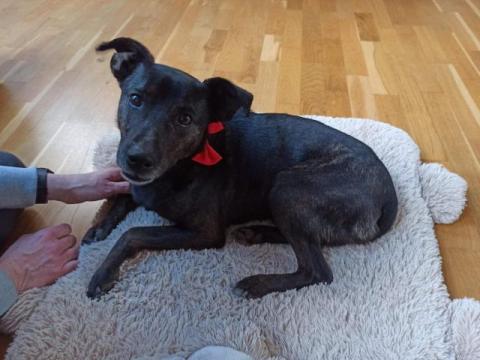 Psiak przebywa na terenie Fundacji Kundelek w Iłowie.