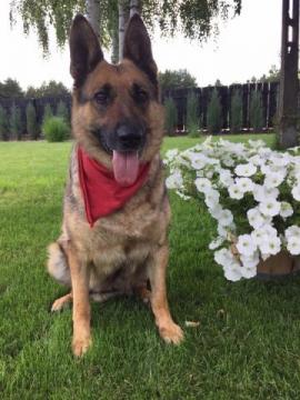 MAMA to około 7 letnia sunia która waży około 28kg. Umie chodzić na smyczy, jest bardzo grzeczną sunią o łagodnym usposobieniu.