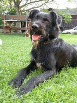 Piękny, wielki pies, w typie sznaucera olbrzyma.