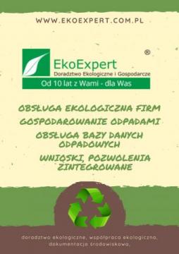 Firma EkoExpert Doradztwo Ekologiczne i Gospodarcze Sp. z o.o. jest uznaną firmą doradczą z wieloletnim doświadczeniem specjalizującą się w obsłudze firm i instytucji w zakresie zarządzania ochroną środowiska. Firma EkoExpert profesjonalnie przygotowuje wszelkie dokumenty środowiskowe związane z funkcjonowaniem firm, sprawuje nadzór nad działalnością firmy, przeprowadza audyty środowiskowe, świadczy usługi doradcze w zakresie ochrony środowiska oraz zajmuje się realizacją szkoleń z zakresu zarządzania ochroną środowiska w firmie. Zarządzanie ochroną środowiska w firmie przez wykwalifikowanych ekspertów środowiskowych zapewnia firmom wsparcie merytoryczne prowadzonej działalności, daje gwarancję należytego wypełniania obowiązków środowiskowych oraz najwyższą jakość opracowań środowiskowych związanych z prowadzoną działalnością. Doradcy środowiskowi z EkoExpert wykonują wszelkie czynności związane z ewidencją środowiskową prowadzonej działalności, rozliczaniem prowadzonej działalności w związku z oddziaływaniem na środowisko, występowaniem o wydanie pozwoleń środowiskowych, zezwoleń środowiskowych, pozwoleń sektorowych, pozwoleń zintegrowanych w szczególności dla takich działalności jak m.in. stacje demontażu pojazdów, składowiska odpadów, ubojnie, krusznie gruzu, skupy złomu. Firma EkoExpert posiada niezbędne doświadczenie w pozyskiwaniu środków finansowych na projekty rozwojowe związane z poprawą funkcjonowania firmy w obszarze ochrony środowiska: poprawa efektywności energetycznej, inwestowanie w OZE.