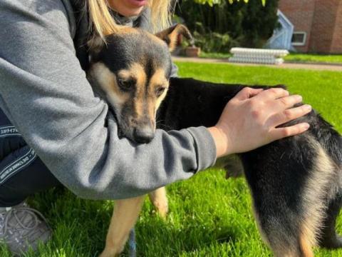Dilya to młody chłopiec, ur. 22.06.2022 , który docelowo będzie średnim psiakiem. Przyjechał ze wschodniej części Ukrainy z terenów walk. Miał zranioną tylna łapkę, która już się zagoiła.