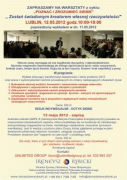 12 maj godz. 10-18 - WARSZTATY POZNAĆ I ZROZUMIEĆ SIEBIE