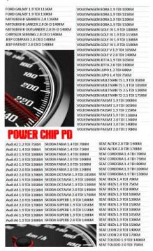 POWER CHIP PD - Chip analogowy lub cyfrowy przeznaczony do samochodów na pompowtryskach AUDI, VW, SEAT, SKODA, FORD, JEEP, MITSUBISHI (szczegółowe informacje w tabeli poniżej)