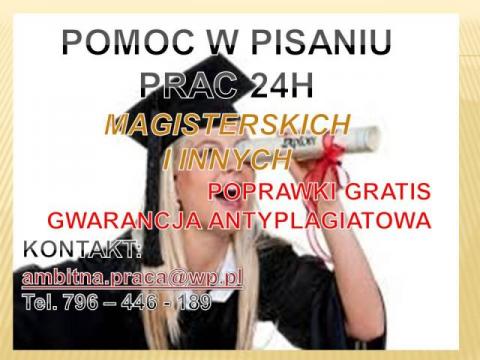 Oferuję pomoc przy pracach magisterskich, licencjackich, dyplomowych, zaliczeniowych, planach pracy, statystykach. POMOC 24H. Poprawiam tekst z uwagami promotora. Pilne od zaraz. Redaguję plany do prac licencjackich i magisterskich.